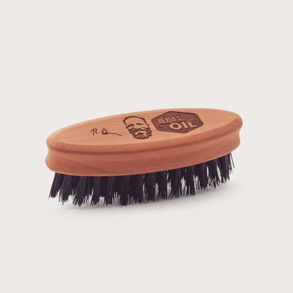 Die Beyer’s Oil Bartbürste (klein) aus Birnbaumholz und Wildschweinborsten wird im Schwarzwald handgefertigt, bringt die Barthaare in Form, massiert die Haut und sorgt für einen gepflegten, glänzenden Bart.